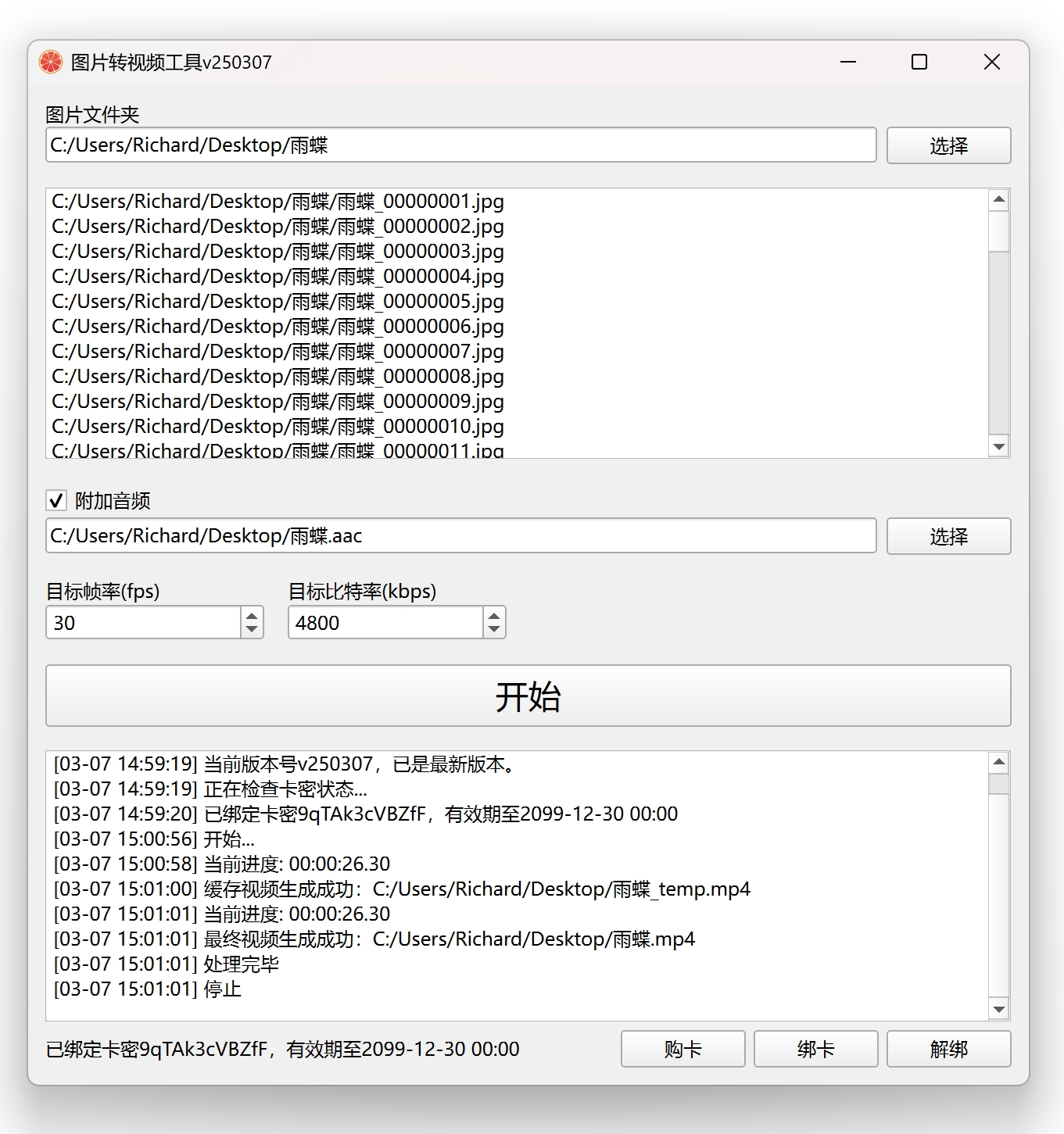图片转视频工具-可自定义帧率比特率-永久卡